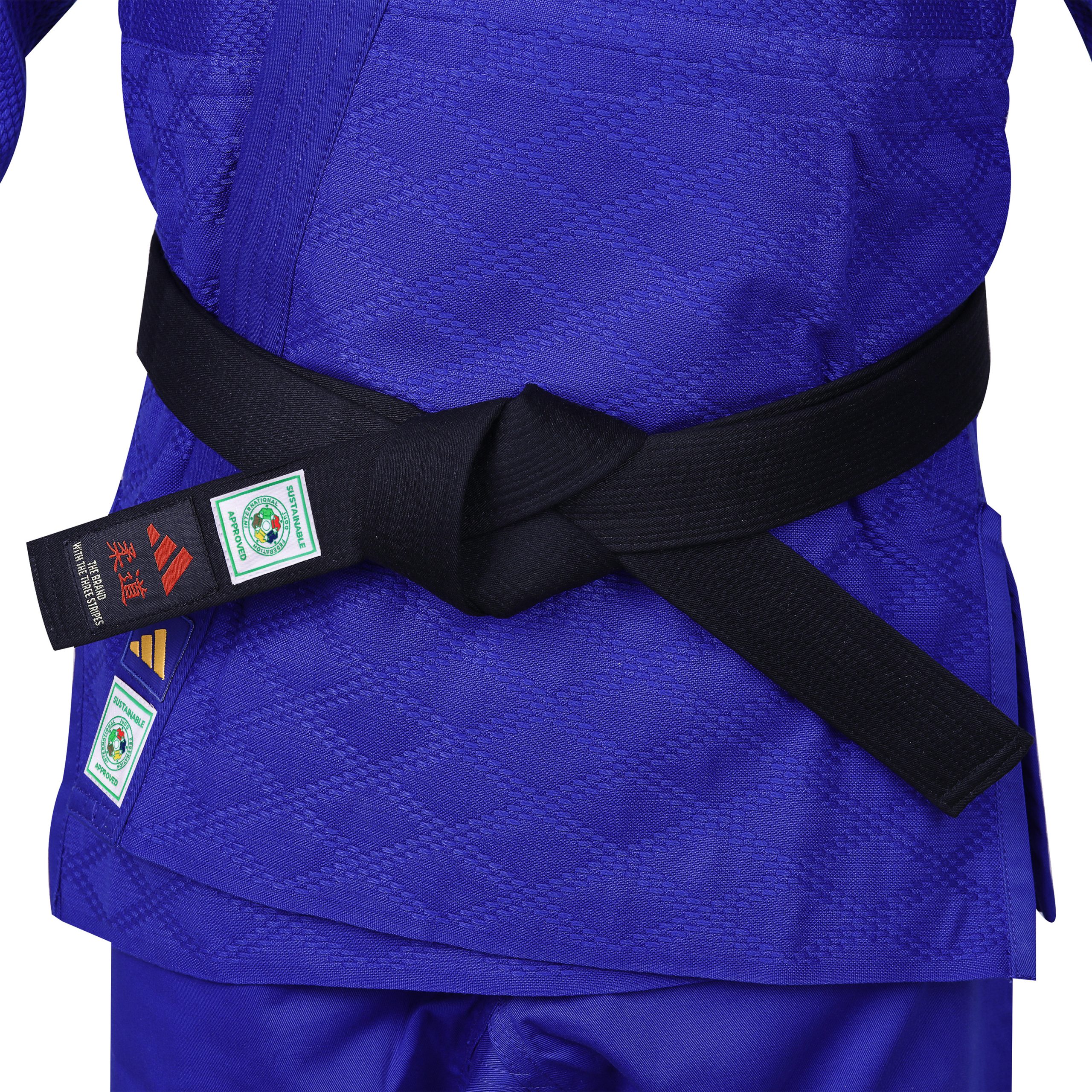 - La etiqueta aprobada por la FIJ con un contorno verde identifica que el judogi cumple las normas de judo vigentes de la FIJ (Federación Internacional de Judo) y que es un producto sostenible certificado.