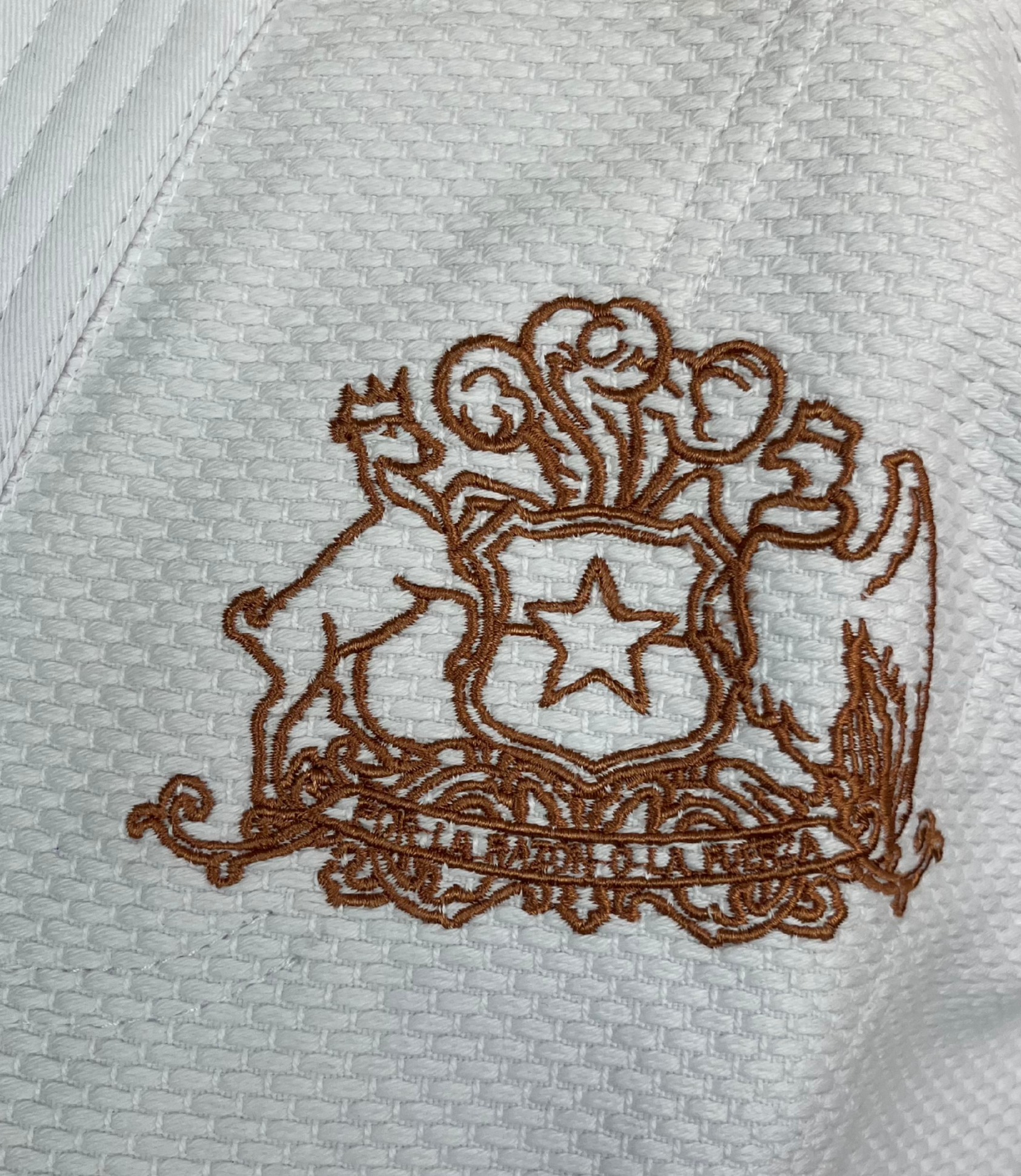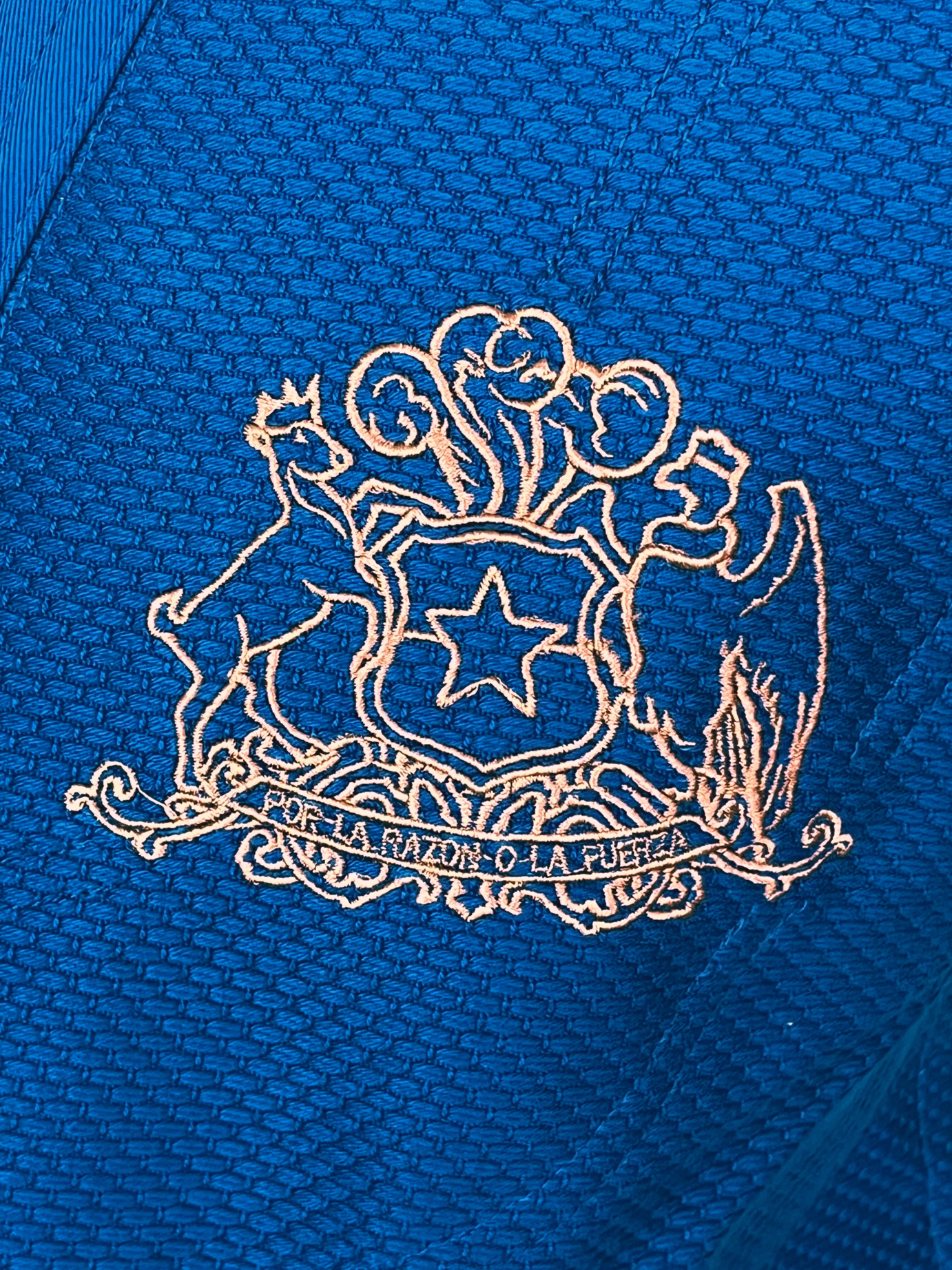 - Escudo de Chile bordado en color cobre.